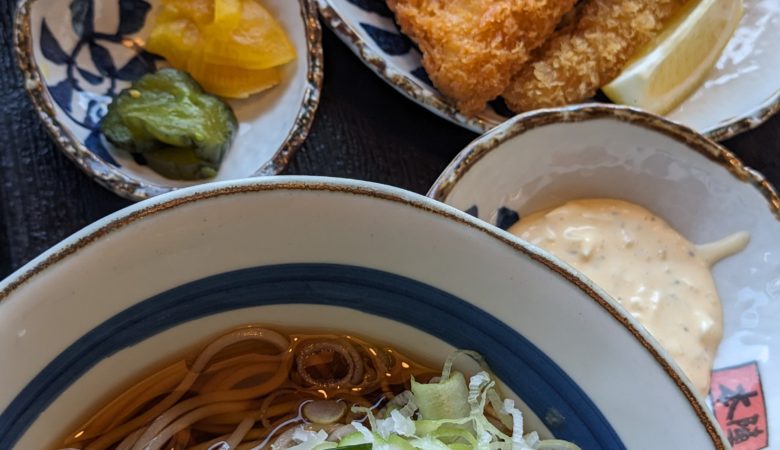 めん房本陣にて夏のまんぷく御膳をいただきました。夏は冷たいそばでさっぱりです。