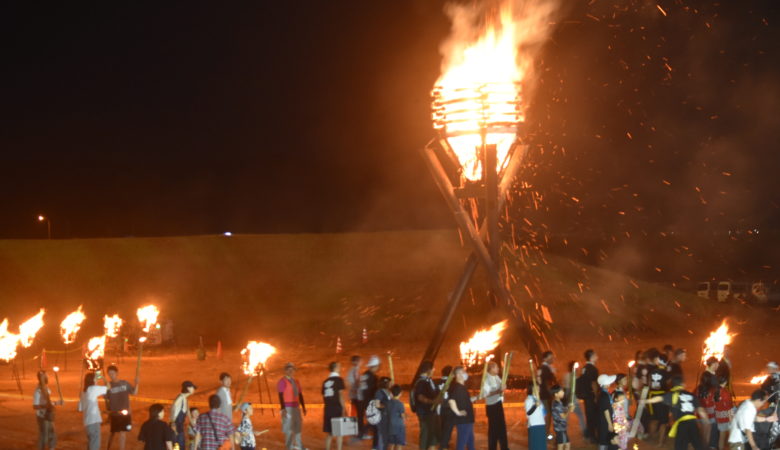 『北国大花火川北大会』と同時に行われる『手取りの火まつり』。豊作の願いを込めた(虫送り太鼓)、先祖の御霊を慰める(送り火)で会場の熱量も上がります。