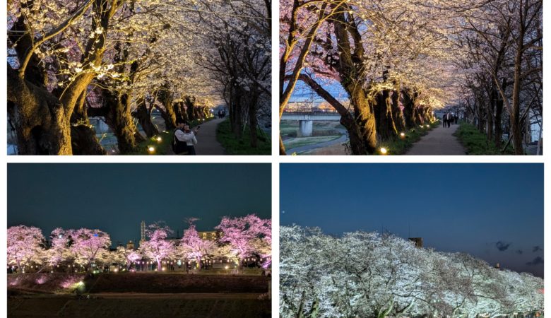 福井市『足羽川桜並木』の夜桜。2.2kmの最高の散歩道です