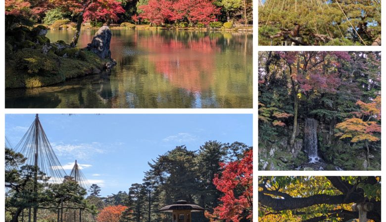 兼六園の紅葉🍁はまさに今が見頃です。まず、雪吊りが目にはいります。瓢池から噴水、霞ヶ池のことじ灯籠、ここはいちばんの撮影スポットなので行列です