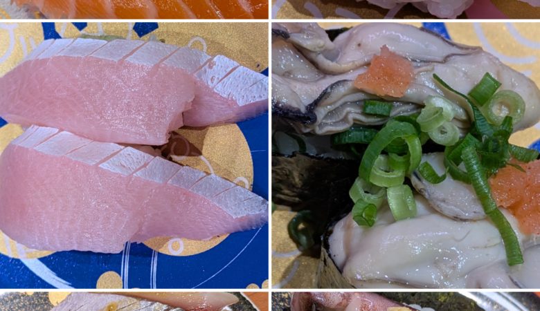 『もりもり寿司』サーモン、ヒラメ、ブリ、蒸しカキ、サバ、アジ。美味しくいただきました。石川県のお寿司もかなりイケますよ
